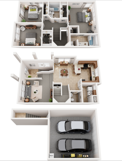 Our townhomes are designed to support your lifestyle with modern interiors and essential conveniences. From attached two-car garages to spacious kitchens and private bedrooms, Red Hawk Crossings delivers a balanced blend of style and practicality in a peaceful residential setting.